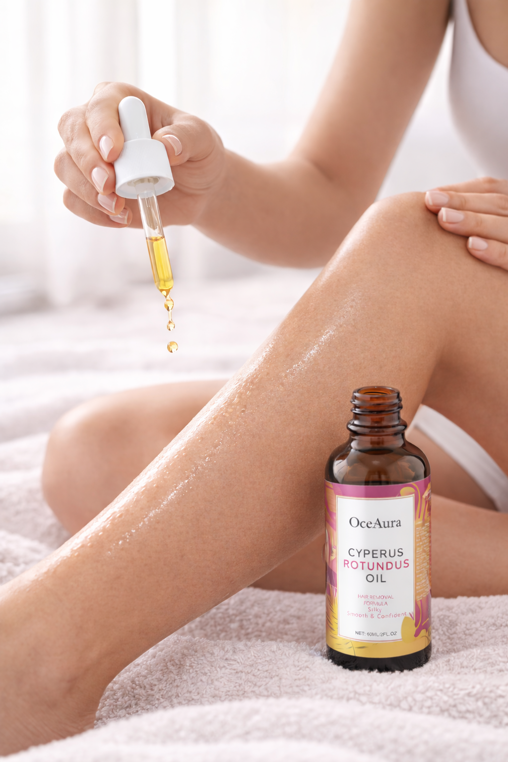 OceAura Cyperus Rotundus Oil is designed to support hair removal while caring for the skin. It helps soften body hair, reduce irritation during and after hair removal, deeply hydrate the skin, and with regular use, slow down hair regrowth for smoother, silkier skin.